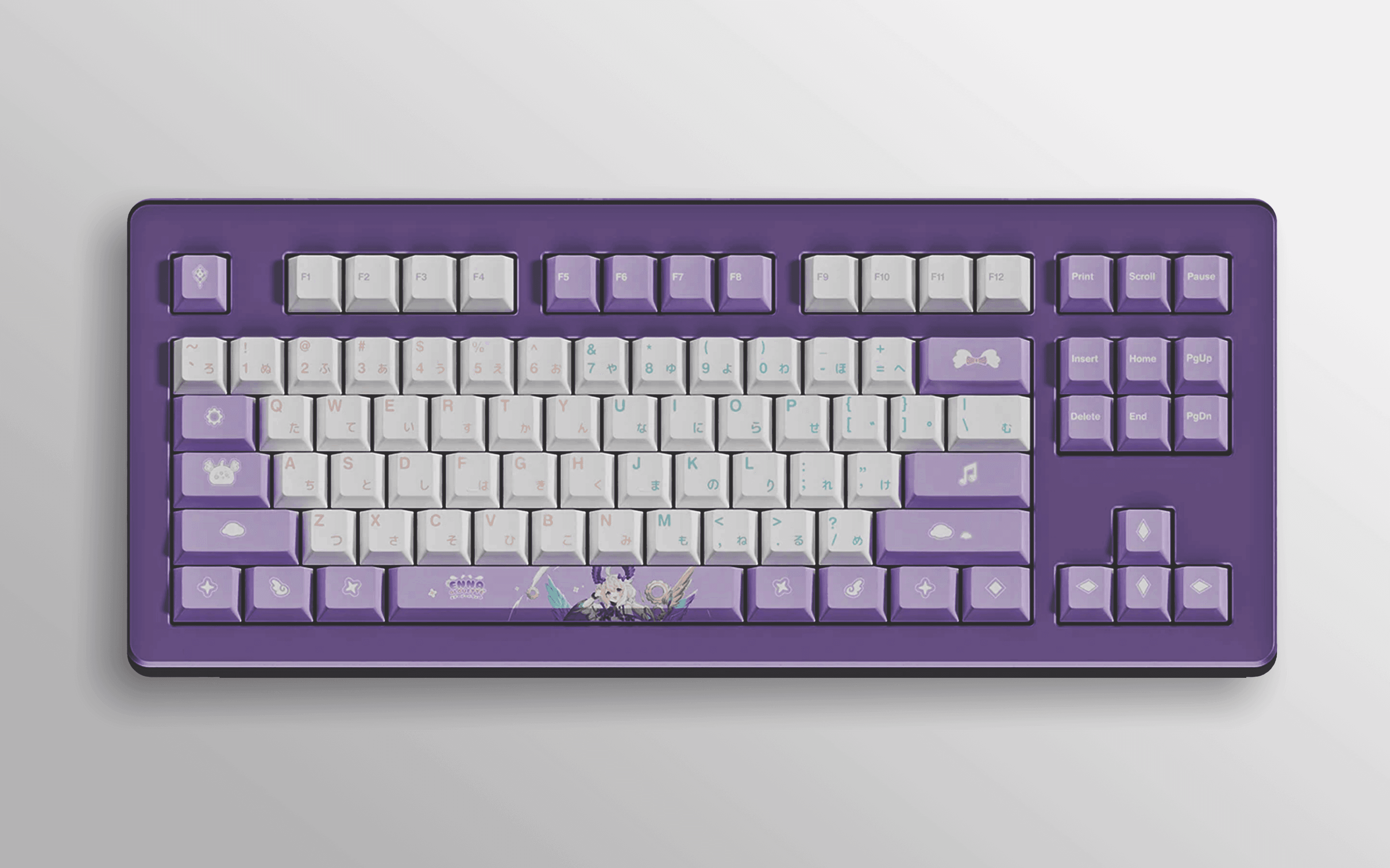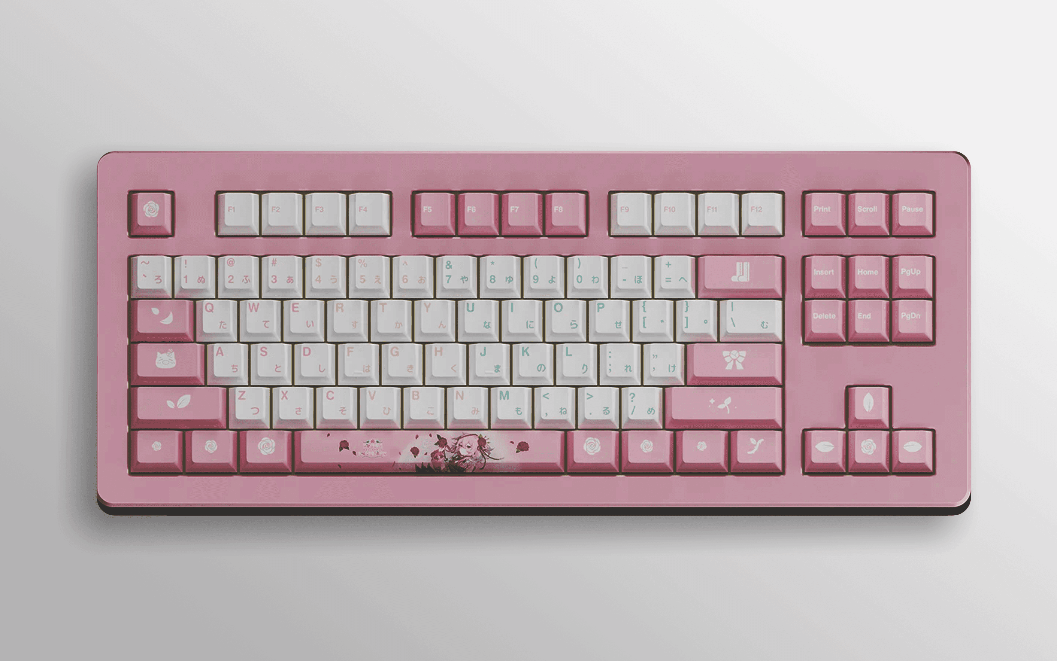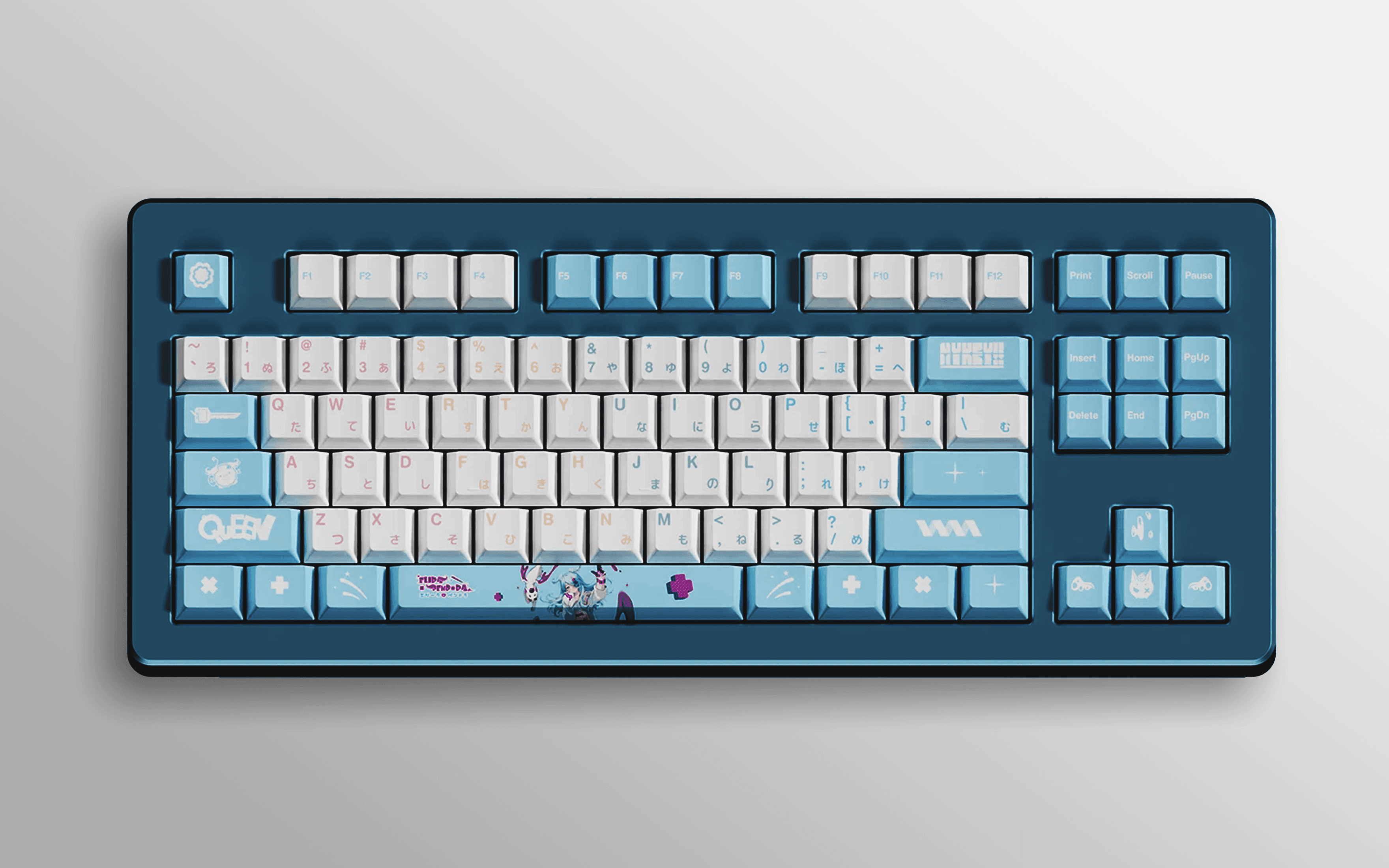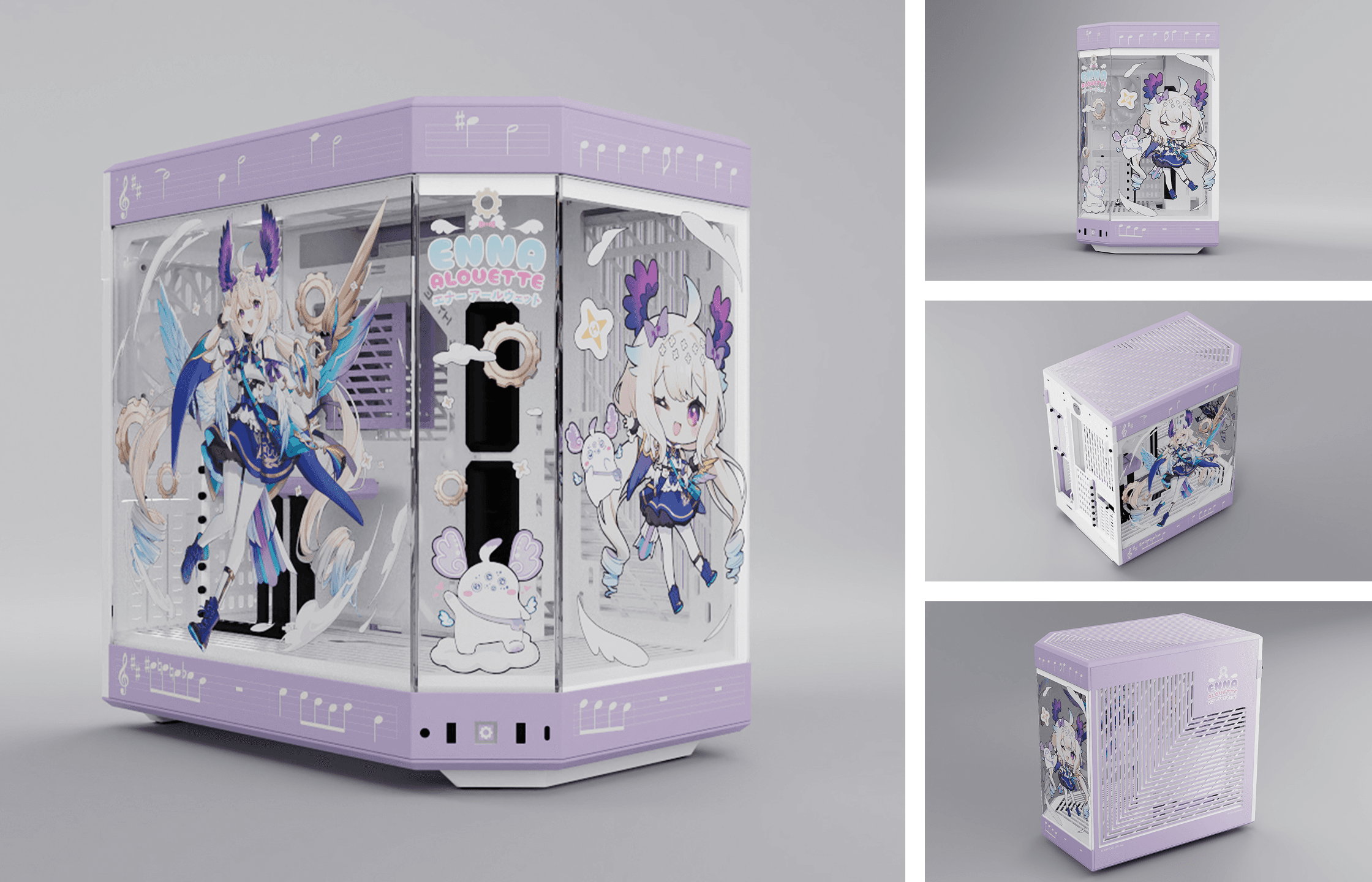 I worked with the three talents to create a cohesive set of thematic peripherals. I designed individual logos and applied them across the line, custom-illustrated keycaps, deskpads, fan shrouds, and a holographic keychain. A pastel palette was chosen to match their characters. Soft, feminine tones that feel on-brand across every SKU.