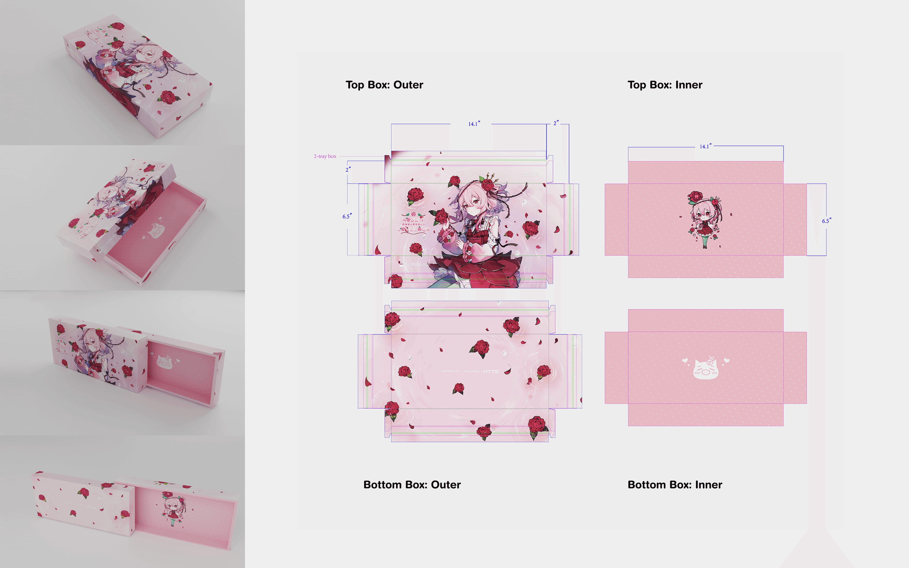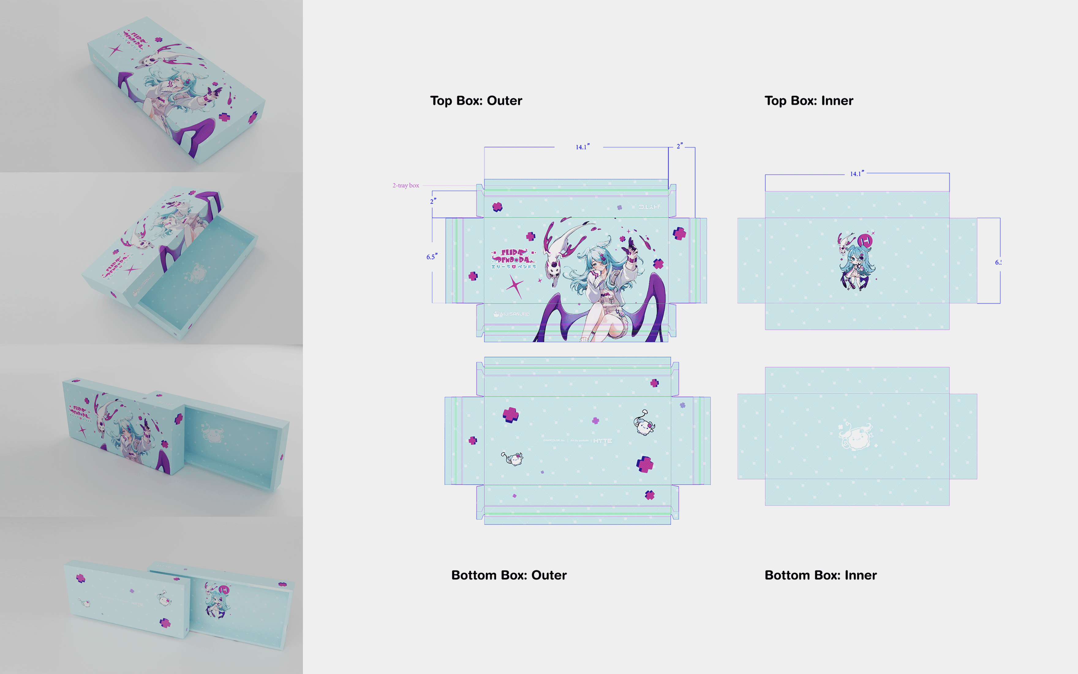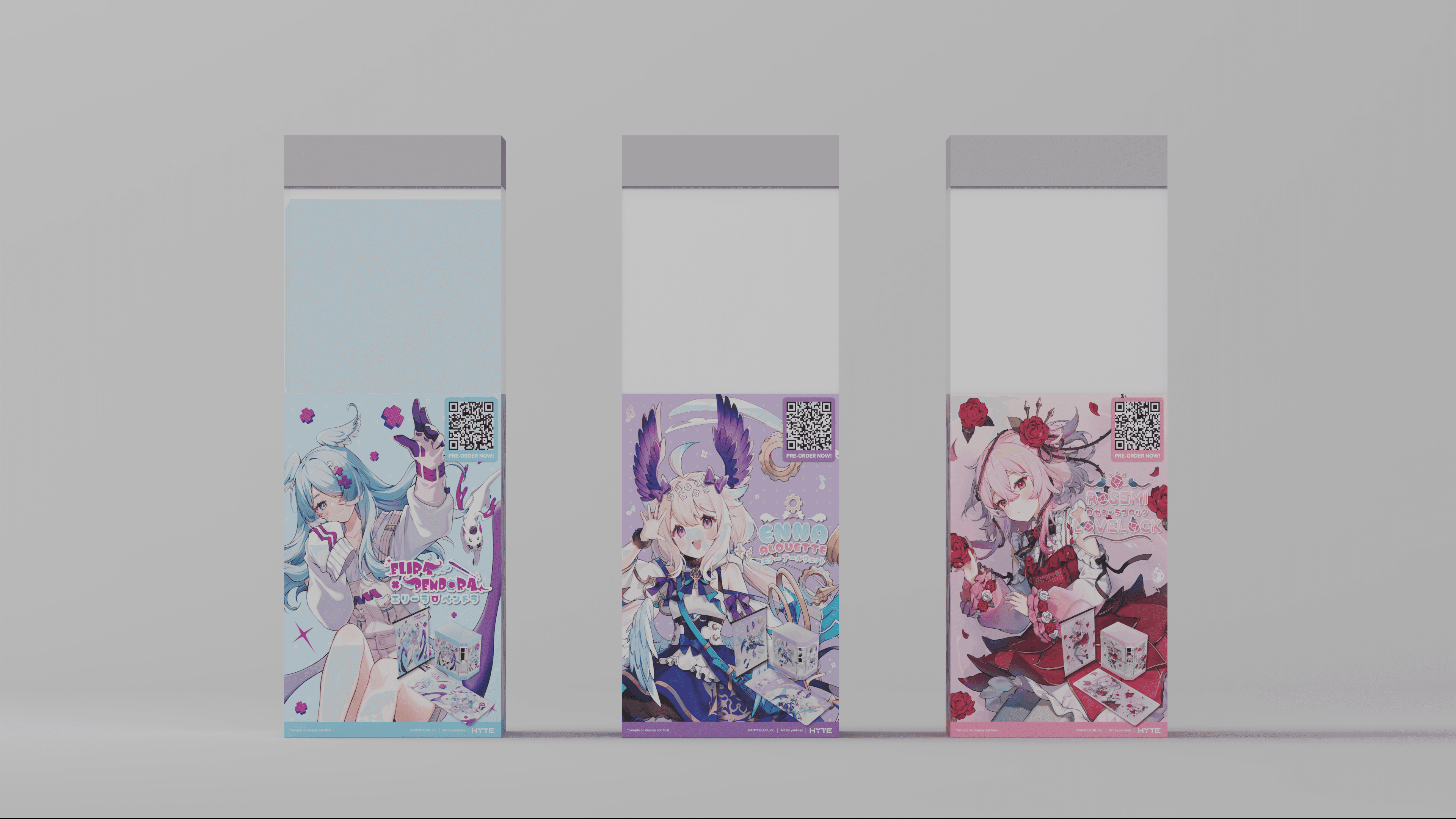 NIJISANJI partnered with HYTE to launch a merchandise lineup featuring three of its popular VTubers: Rosemi, Enna, and Elira. Each product was tailored to reflect the characters’ unique identities, from concept to final production. I led the creative process end-to-end concept development, visual design, and production. Ensuring the collaboration captured both NIJISANJI’s essence and HYTE’s innovative style, delivering cohesive products ready for fans worldwide.